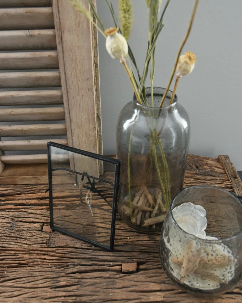 Fotolijst met standaard, IB Laursen per stuk. Deze mooie stijlvolle fotolijst heeft een iets verouderde metalen frame met twee lagen glas. U kunt de lijst gebruiken voor een mooie en dierbare foto, maar een mooie veer of geperste bloemen zijn ook heel geschikt.