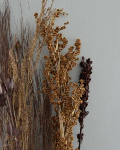 Gedroogde gemengde grassen en zaaddozen. Deze mix van bijzondere grassen en zaaddozen is in mooie warme tinten. U kunt zelf aan de slag met deze grassen. Zowel gemengd op de vaas als in verschillende vazen staan ze mooi.