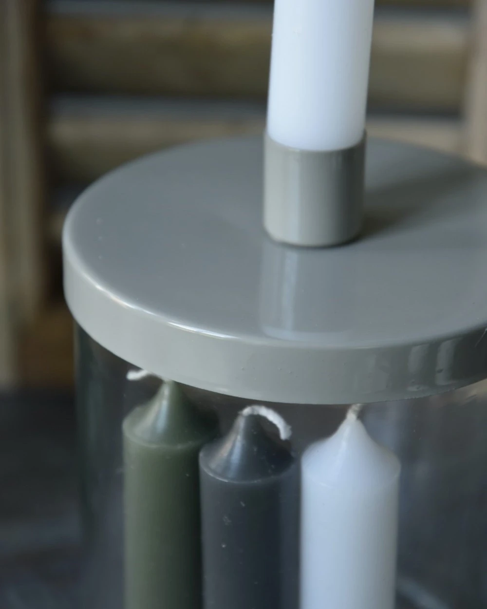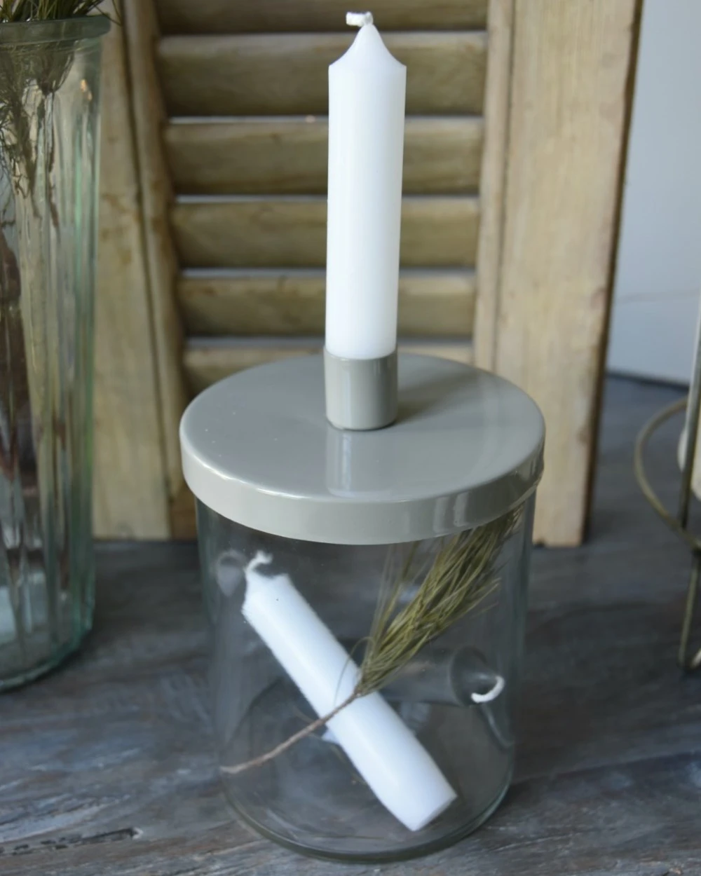 Glazen Pot Met Grijs Metalen Kaarsen Inzet, IB Laursen