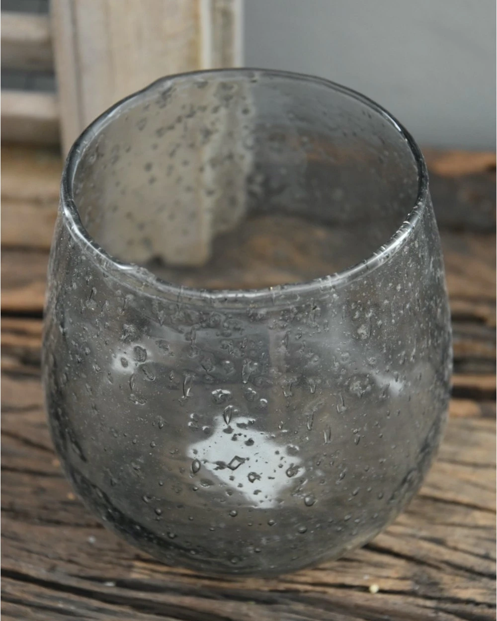 Iets bolle glazen vaas met bubbels, zilvermetaal en grijze gloed per stuk. Deze mooie glazen pot heeft een iets grijze gloed en in het glas zitten zilvermetaal splinters en bubbels verwerkt voor een mooi effect. Het model is van onder iets bol en loopt iets taps naar boven. Het glas kan heel mooi worden gebruikt als windlichtje met bv wat schelpen als decoratie.