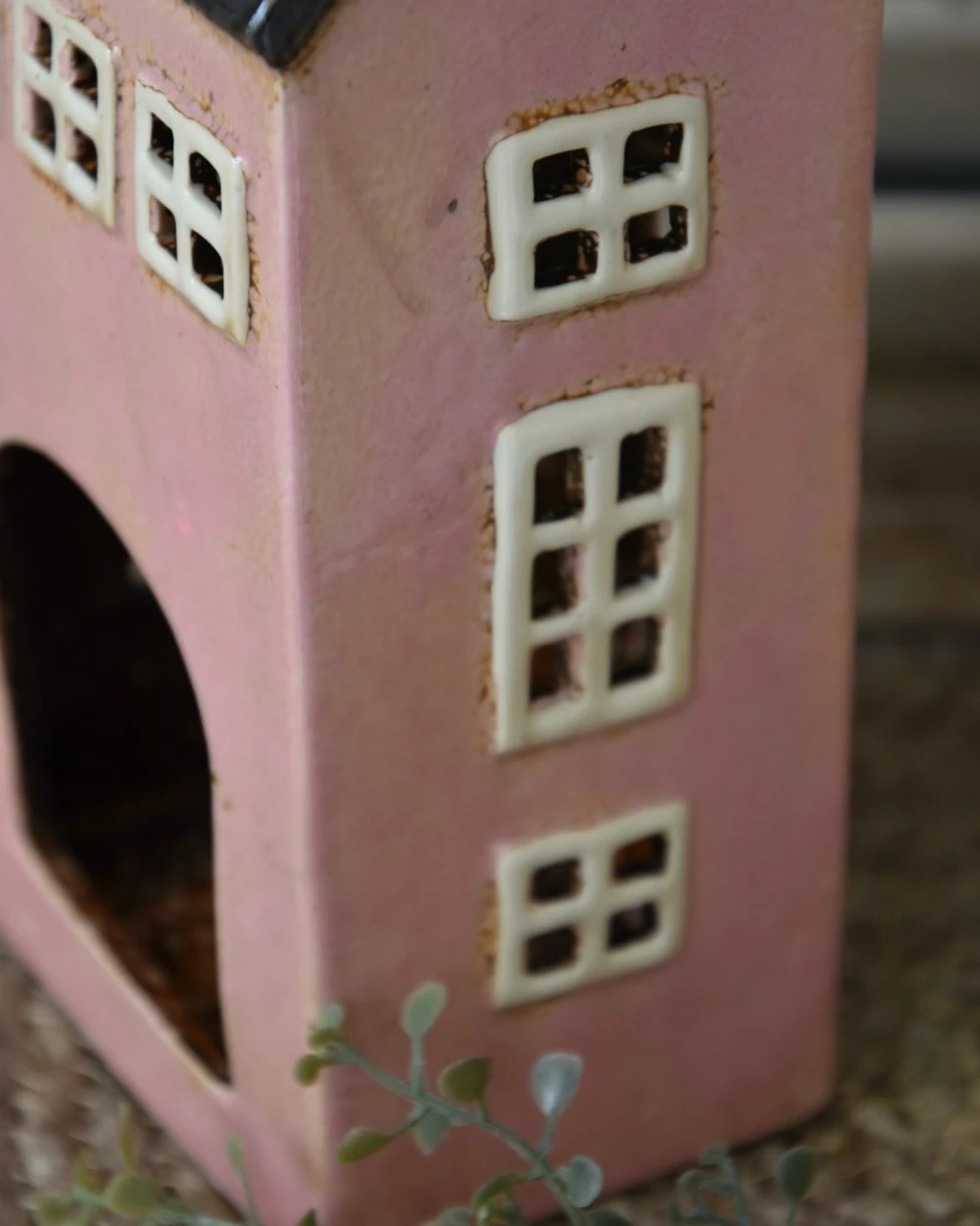 Nyhavn Pakhuis Theelicht Roze Met Zwart Dak En Schoorsteen, IB Laursen