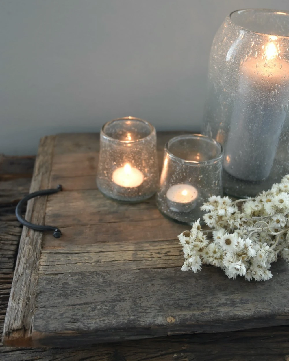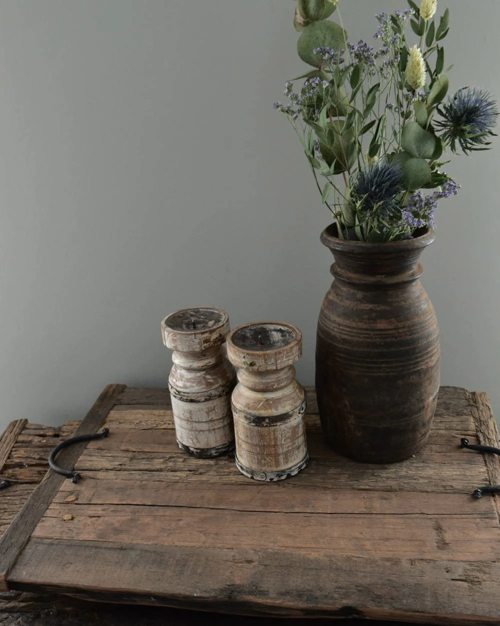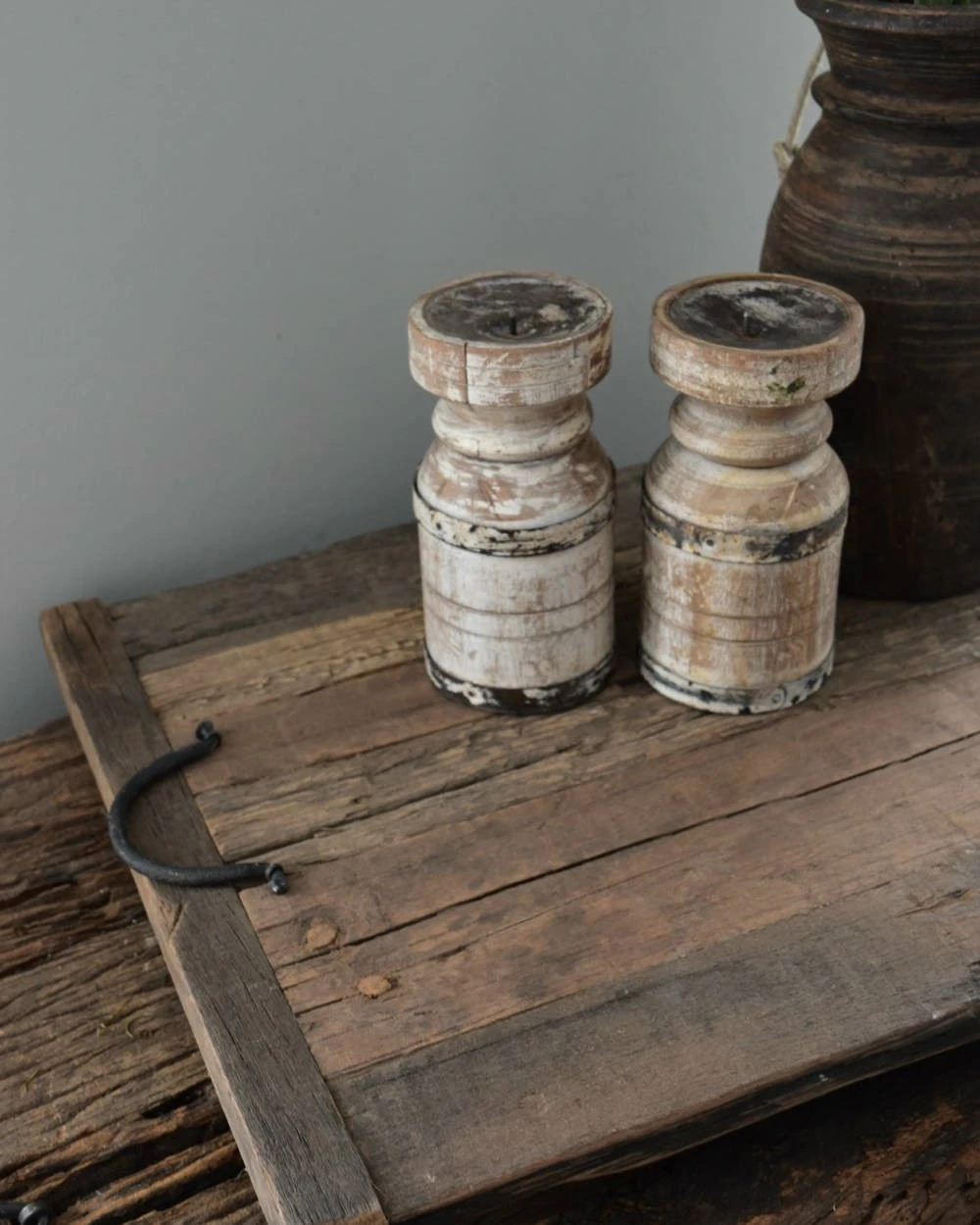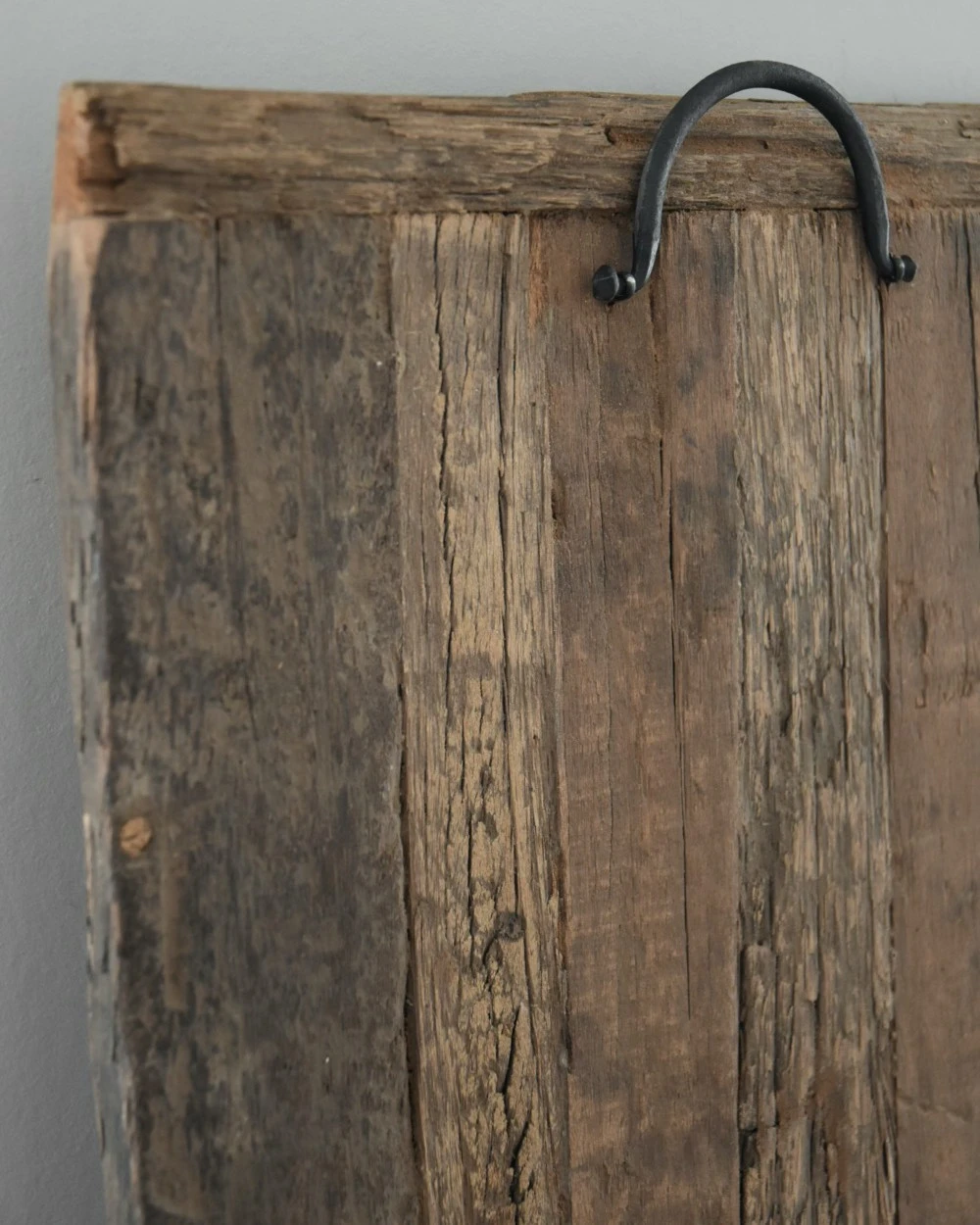 Oud houten railway plateau met hengsels. Dit prachtige houten plateau is gemaakt van oude spoorweg delen, daardoor heeft het een uniek uiterlijk. Aan de ondezijde zijn twee latjes geplaatst waardoor het geheel iets omhoog komt en extra diepte geeft. Aan de bovenzijde zijn twee smeedijzeren hengsels bevestigd voor een mooie finishing touch. U kunt met dit prachtige plateau eindeloos decoreren.