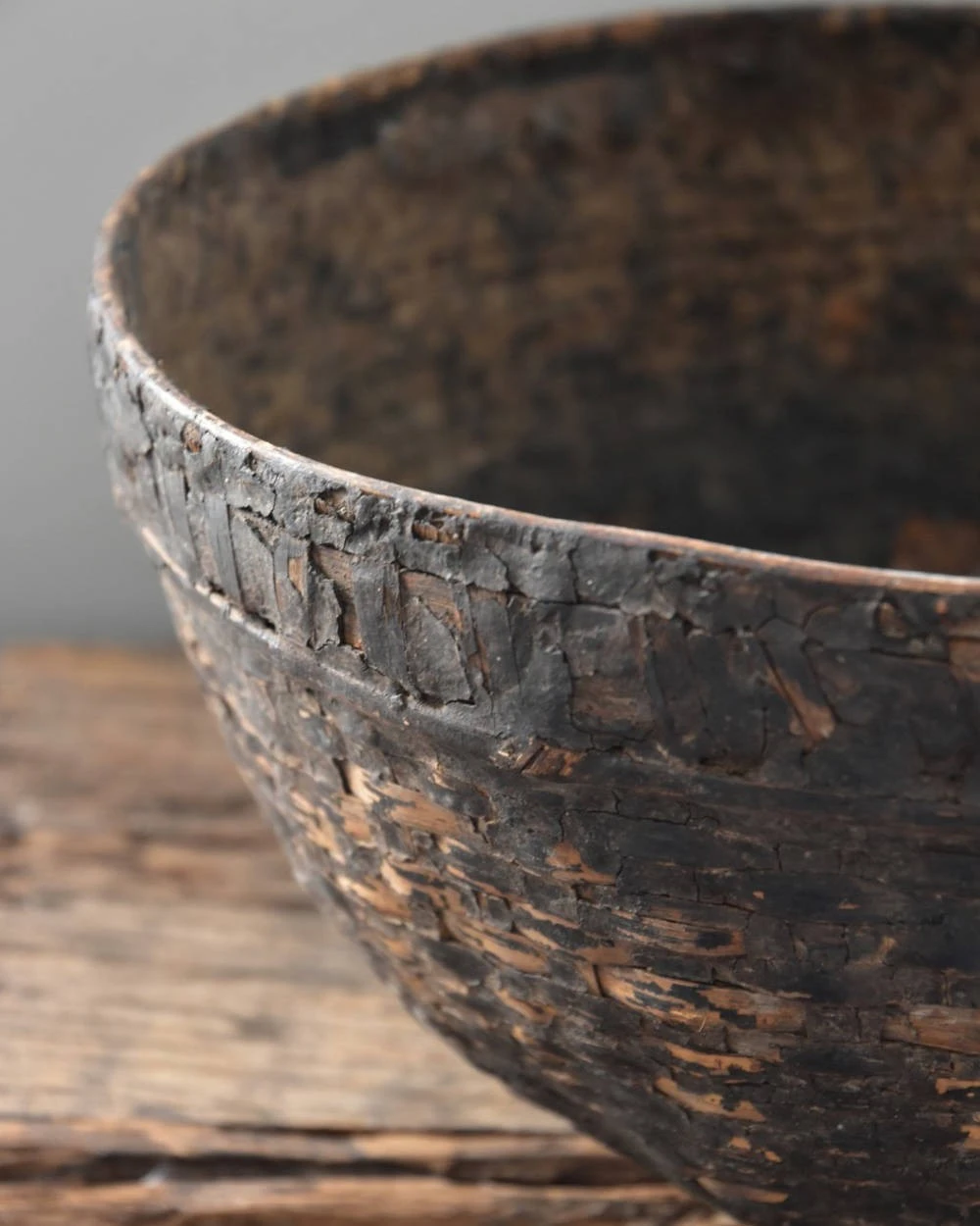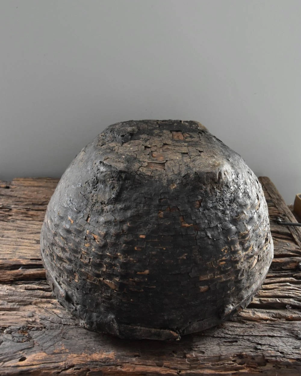 Oude brocante leemmand. Deze prachtige gevlochten mand is zwart heeft mooie details en gebruikers schade. Dit geeft veel karakter aan de mand. De mand heeft niet heel veel nodig, een mooie droogbloem toef, of wat gedroogde bonen voldoet al.