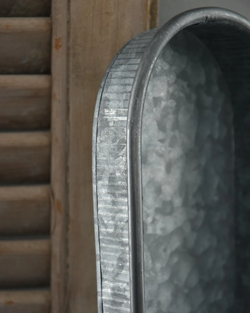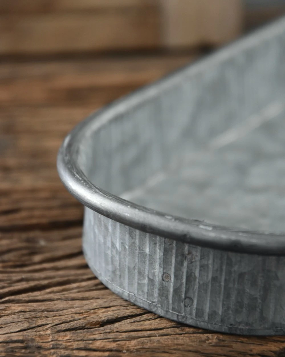 Ovaal dienblad met fijne schulp rand groot, IB Laursen. Dit lange decoratie bord is van zink gemaakt en heeft een recht opstaande fijne schulp rand. U kunt hiermee naar wens op alle manieren mee blijven decoreren.