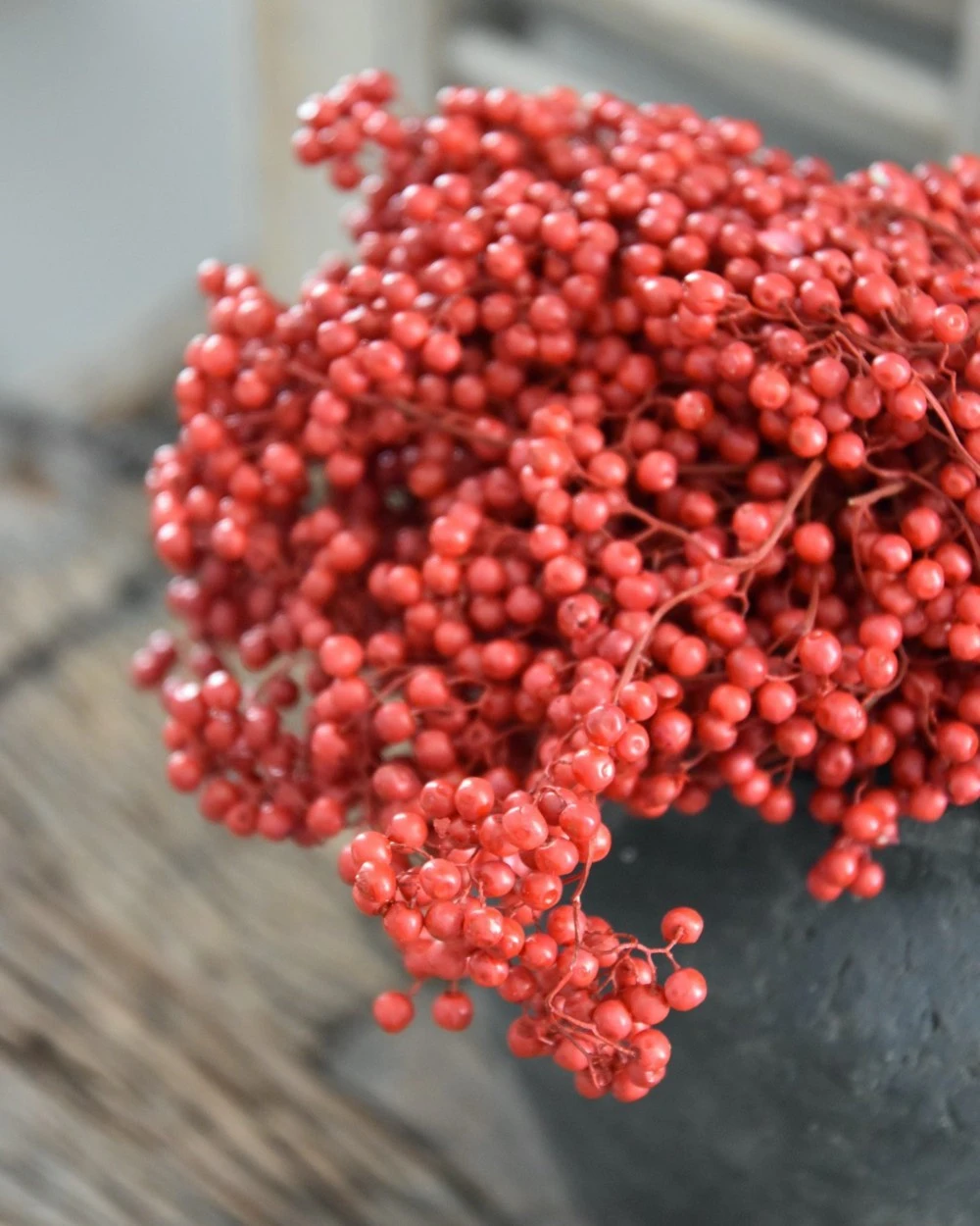 Rode Peperbessen, gedroogd per bos. Peperbesjes als decoratie in de keuken op een pot… Deze rode besjes geven heel veel sfeer en zijn als een bundel gebonden.