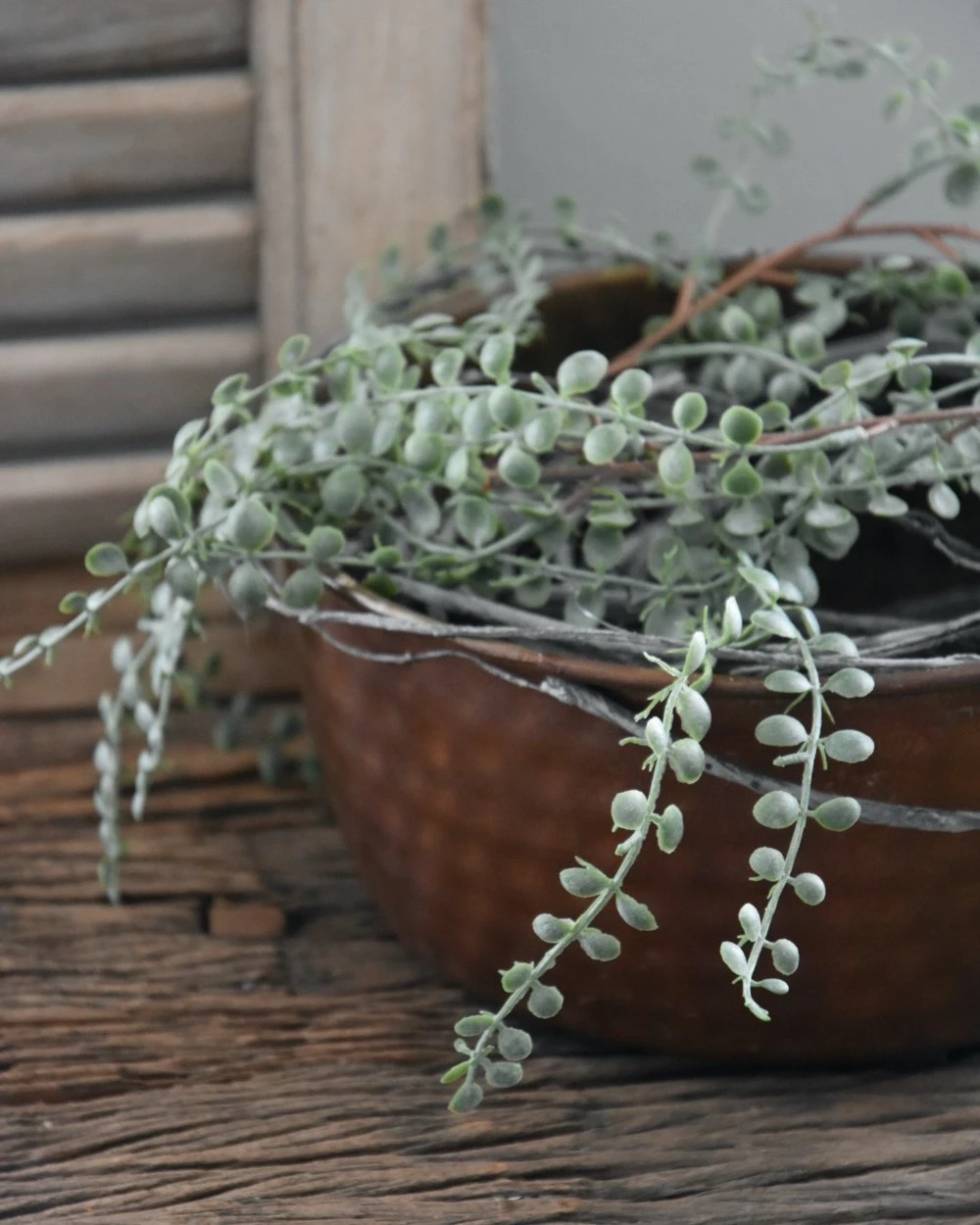 U kunt de heel mooi gebruiken op bijvoorbeeld het aanrecht of de keukentafel met gedroogde bonen en vruchten en een tak. Of opmaken met vetplanten, mos wat dennenappels…. (let op, wij adviseren altijd om een binnenschaal of plastic te gebruiken voor het behoud van de schaal of pot). Deze schaal kent heel veel mogelijkheden en is ook in een kleinere variant verkrijgbaar.
