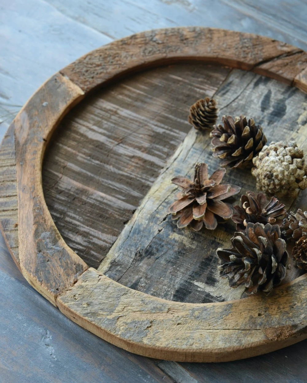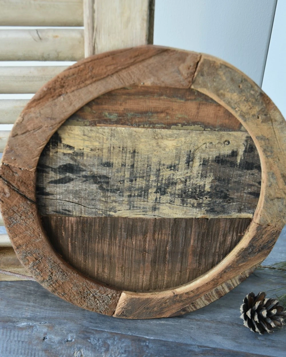 Ronde oud houten plateau, IB Laursen. Dit ronde plateau is gemaakt van gebruikt hout wat vol karakter is. Het ronde model heeft een rand die iets hoger is, door het gerecyclede hout is ieder plateau uniek met zijn eigen kenmerken. U kunt het plateau gebruiken voor kaarsen, kandelaren, een gezellig plantje……… De tray komt uit de Unique collectie van het Deense merk IB Laursen.