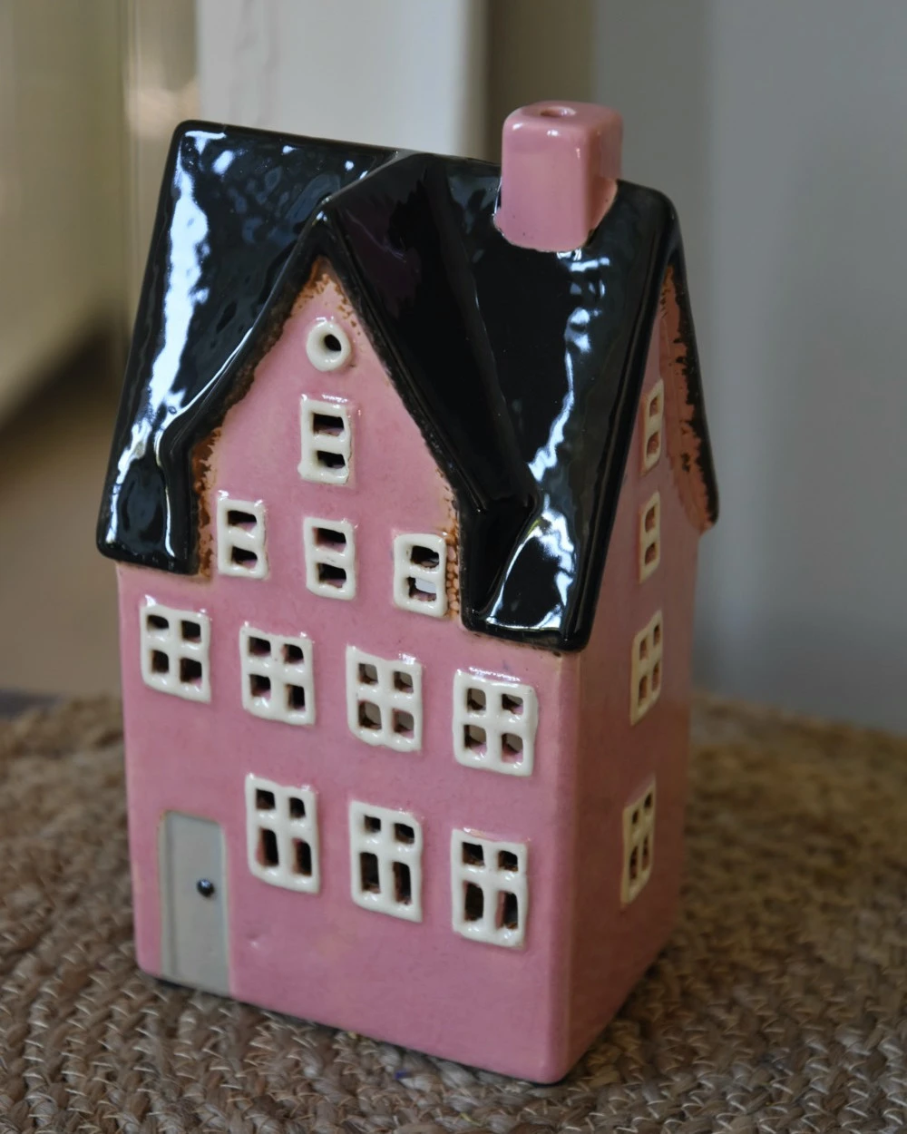 Theelicht pakhuis Nyhavn roze met zwart dak, IB Laursen. Dit elegante theelicht pakhuis Nyhavn is roze met een mooi gevormd zwart dak met schoorsteen. Ook de vele ramen zijn open en gebroken wit van kleur, de deur is grijs en aan de achterzijde zit een gat waar u gemakkelijk een waxinelichtje in kunt plaatsen. Het pakhuis is van keramiek gemaakt en met de hand afgewerkt waardoor dit leuke iets speelse model is ontstaan welke geïnspireerd is op de pakhuizen in de Deense haven Nyhavn (waar ook het merk Deens is, IB Laursen). U kunt de pakhuisjes leuk combineren naar wens om zo een gezellig geheel te creëren.