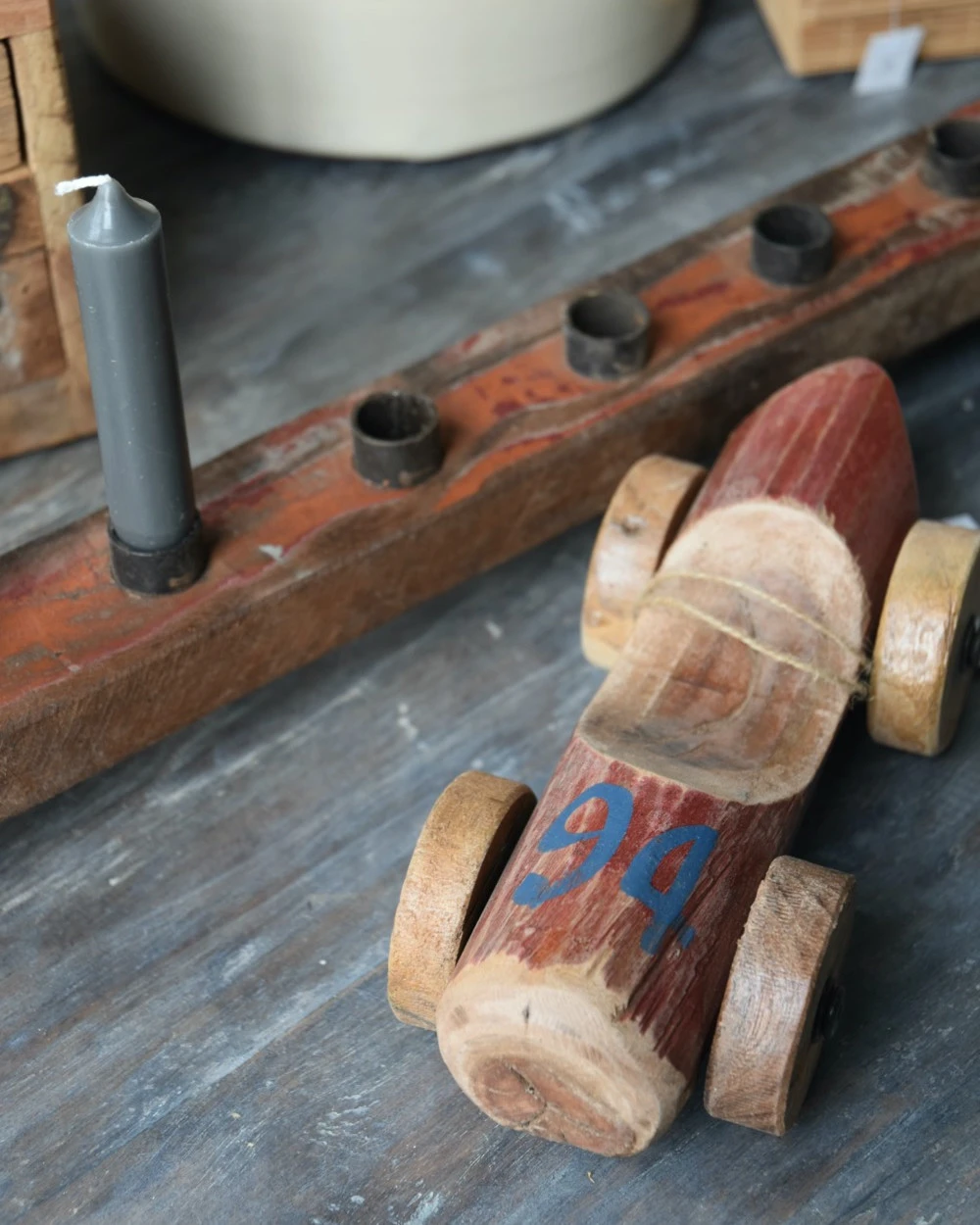 Unieke rode auto van hout met blauw nr 94, IB Laursen. Deze stoere race auto is van gebruikt hout met de hand gemaakt, hierdoor is de auto uniek en vol karakter. De auto heeft een donker rode kleur met in het blauw nummer 94 erop. Ook de wielen zijn van hout en met zijn geleefde uiterlijk is het echt een eye-catcher. U kunt de auto als decoratie showen in een mooie vitrinekast, op een bureau of lage kast….. Deze unieke auto komt uit de Uniq lijn van IB Laursen en er is er ook echt maar 1 van.