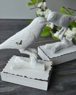 Vogel Boekensteun Antiek Wit, Set Van Twee