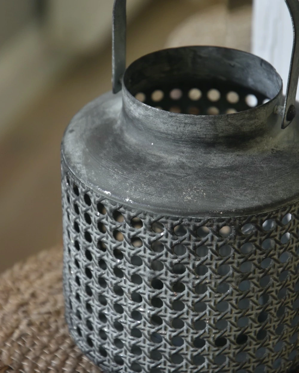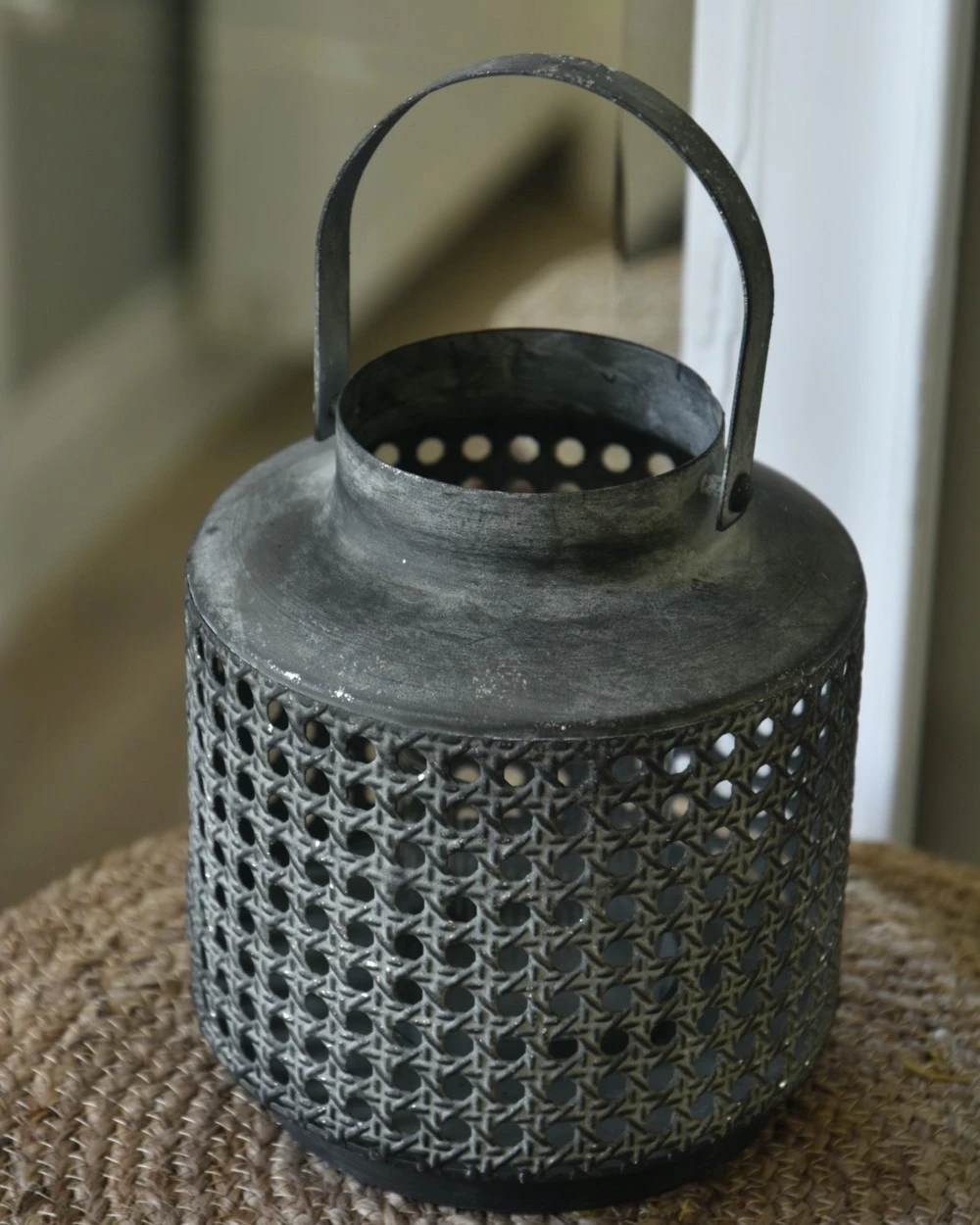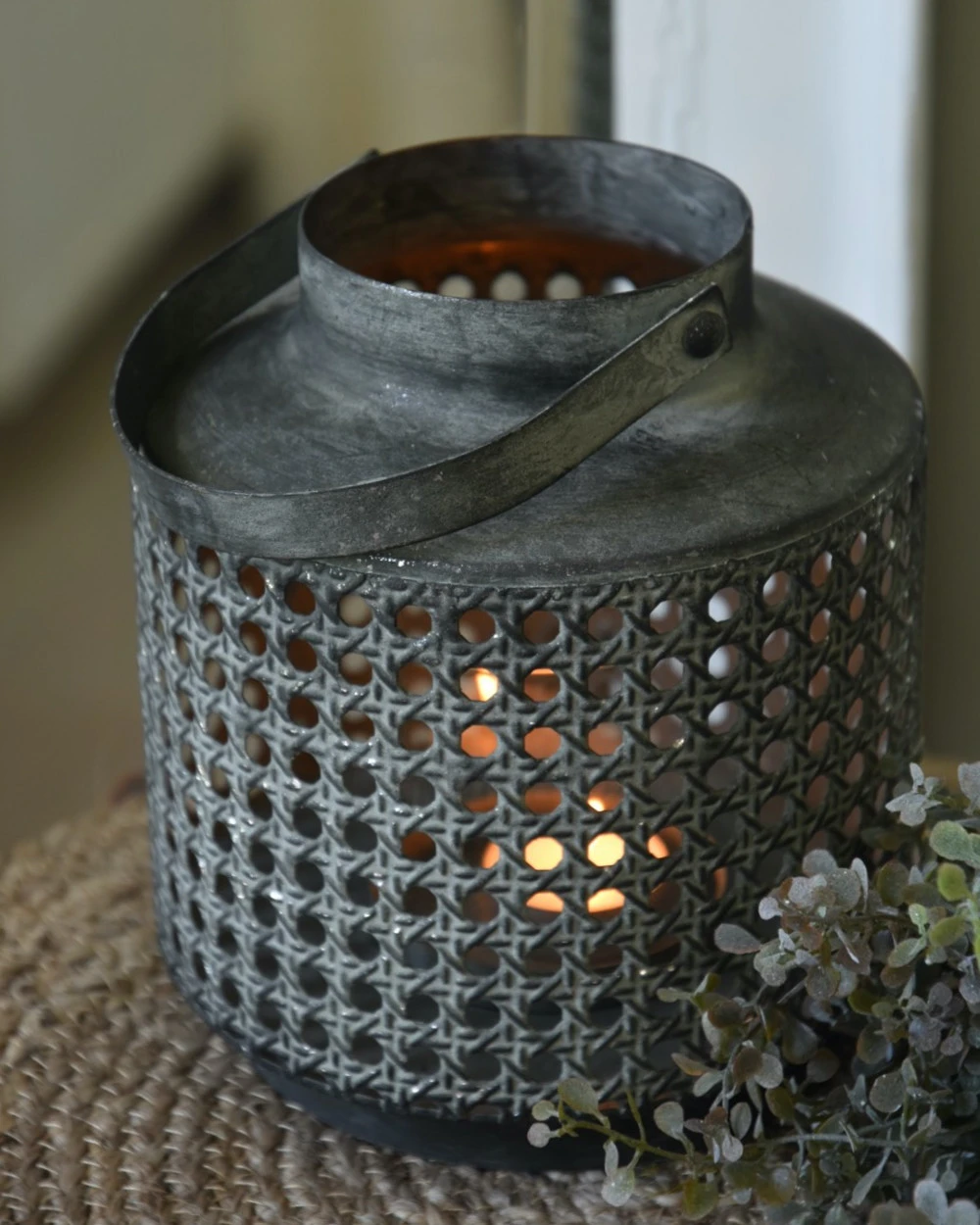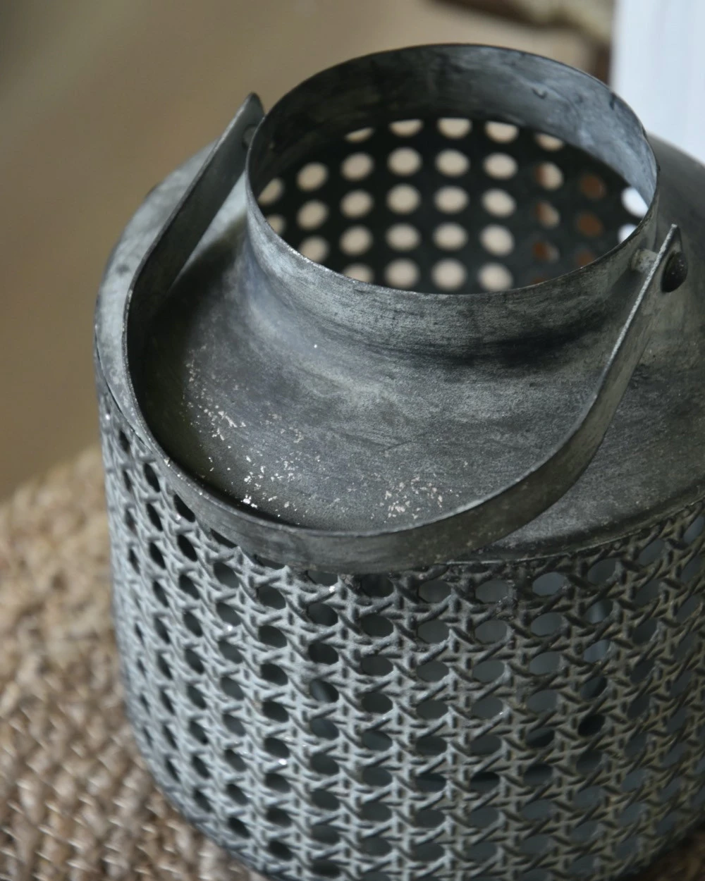 Windlicht Met Hengsel Van Metaal Met Geweven Gaatjes Patroon
