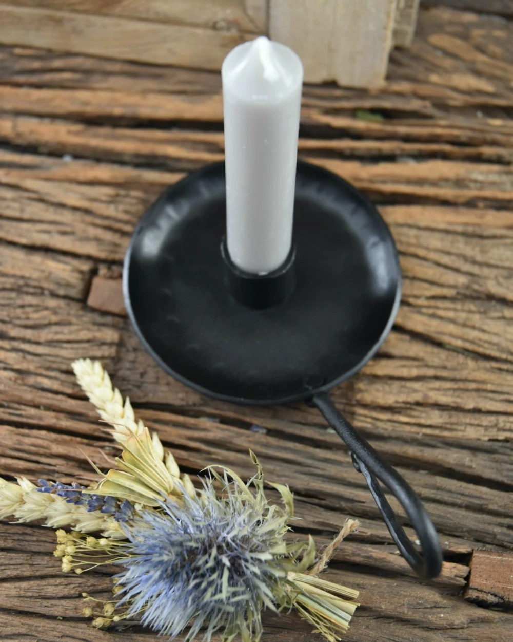 Zwarte metalen kandelaar met oor, IB Laursen per stuk. Deze kandelaar heeft een mooi eenvoudig model met een lang oor. Dit model is tijdloos en past overal bij. Met een kleur kaars wat goed bij u past, kunt u er een compleet geheel van maken. In de kandelaar passen de korte kaarsje heel goed.